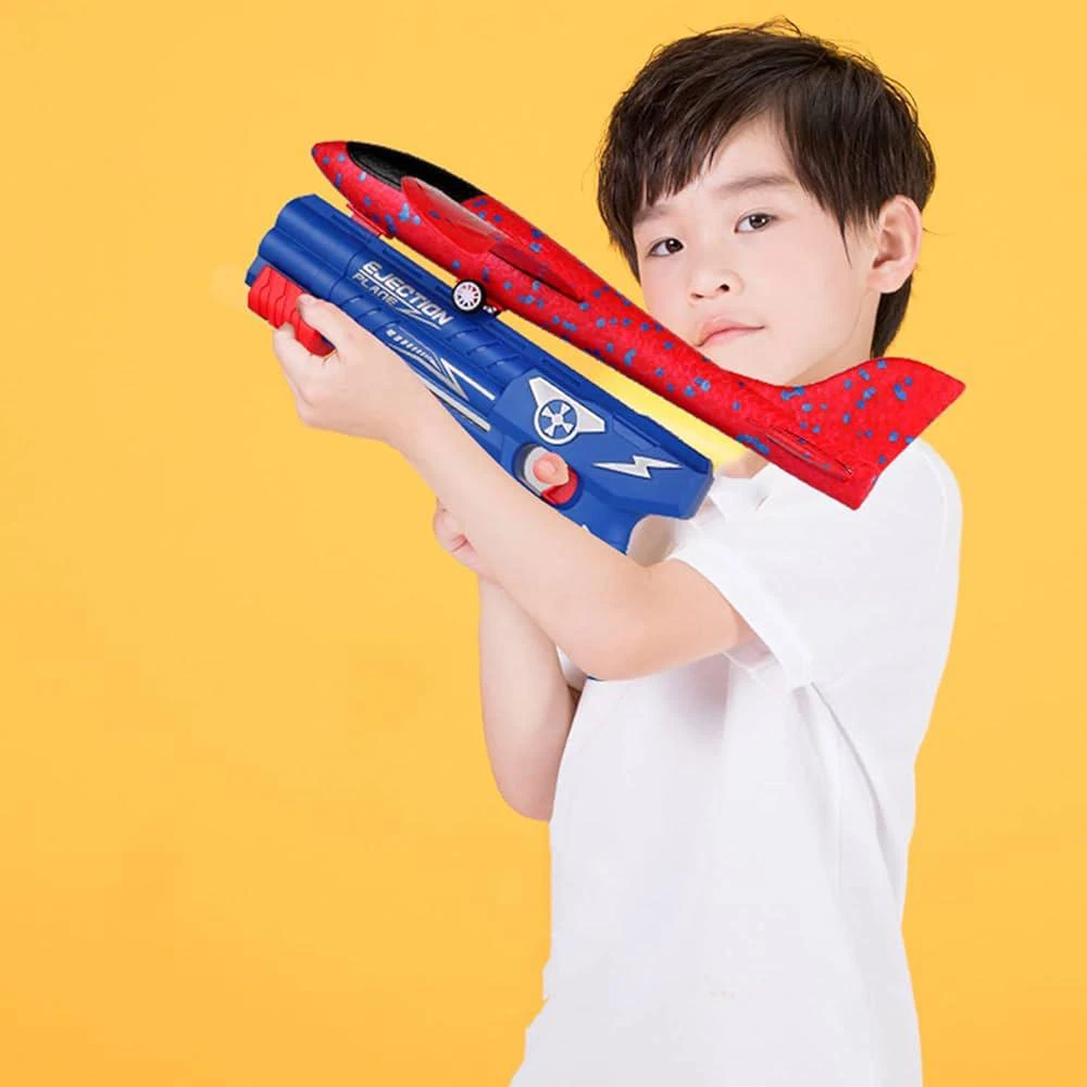 استمتع بتجربة طيران مذهلة مع مجموعة إطلاق الطائرات المصغرة – تصميم مبتكر يجمع بين الإثارة والسهولة! المسدس البلاستيكي الأزرق يطلق الطائرات الإسفنجية الحمراء بخفة وسرعة، لتطير في الهواء بانسيابية مذهلة.