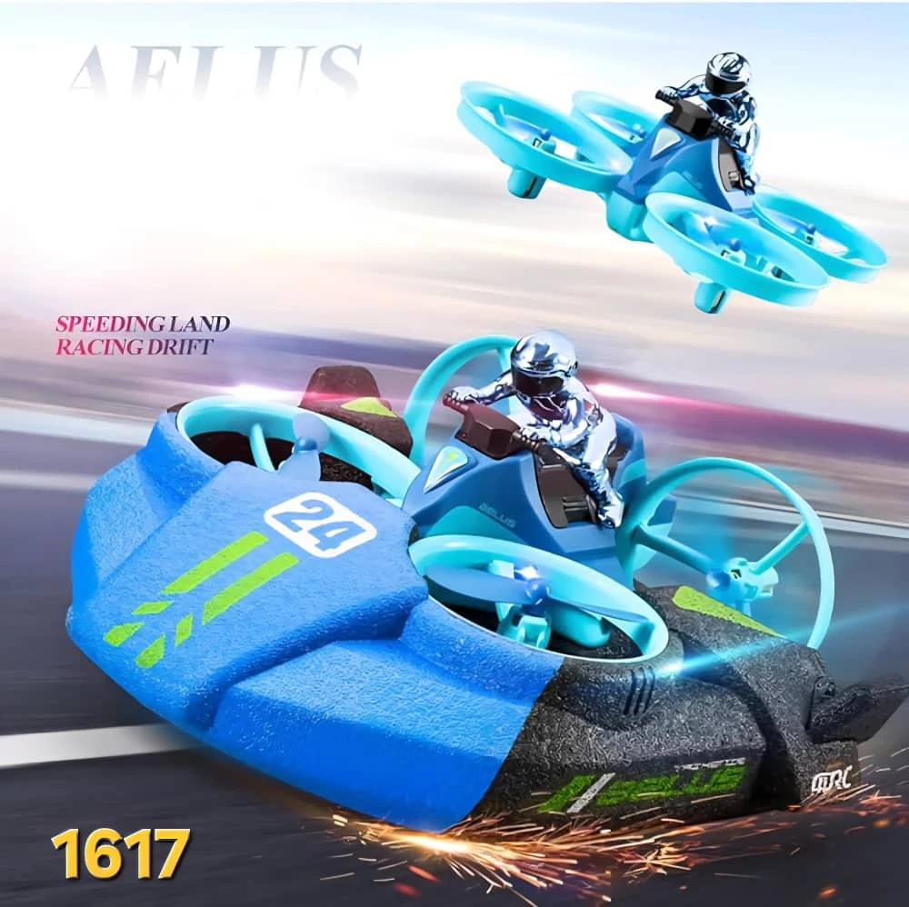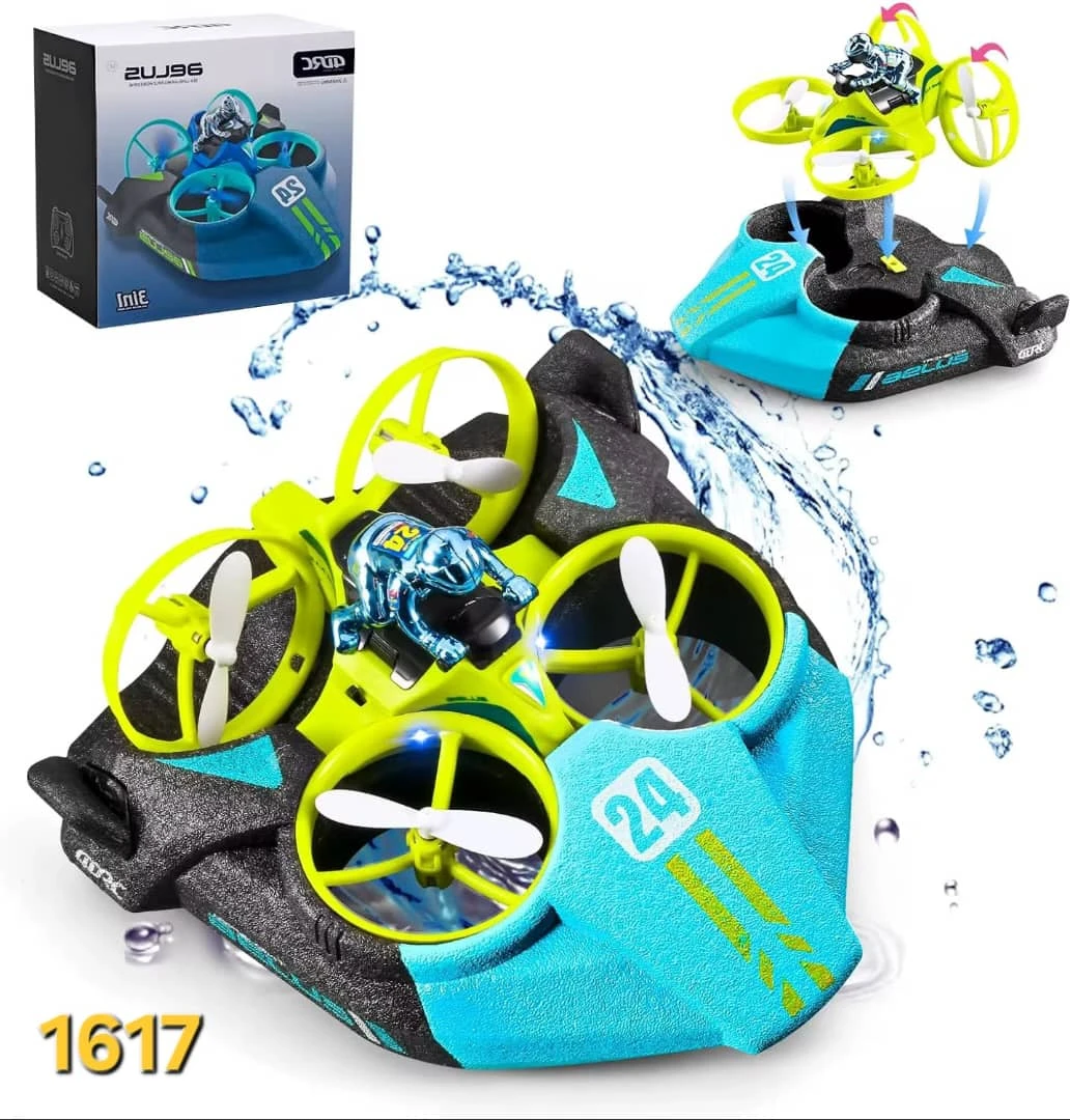 ✅ تصميم 3 في 1: طائرة درون، سيارة أرضية، وقارب مائي في جهاز واحد.