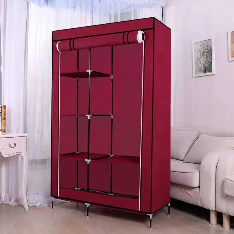 جدران الخزانة مصنوعة من القماش 🧵 والاعمدة في إطار المنتج مصنوعة من معدن متين ومقاوم