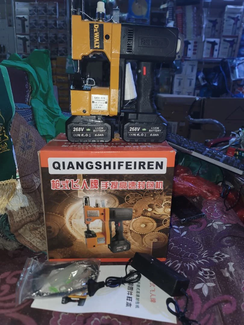 ماكينة خياطة الأكياس تعمل بالبطارية، مثالية لخياطة الشوائل والأكياس بسرعة وسهولة، تجمع بين القوة والمرونة لتناسب الاستخدام اليومي المكثف في المخازن، المصانع، والمزارع.