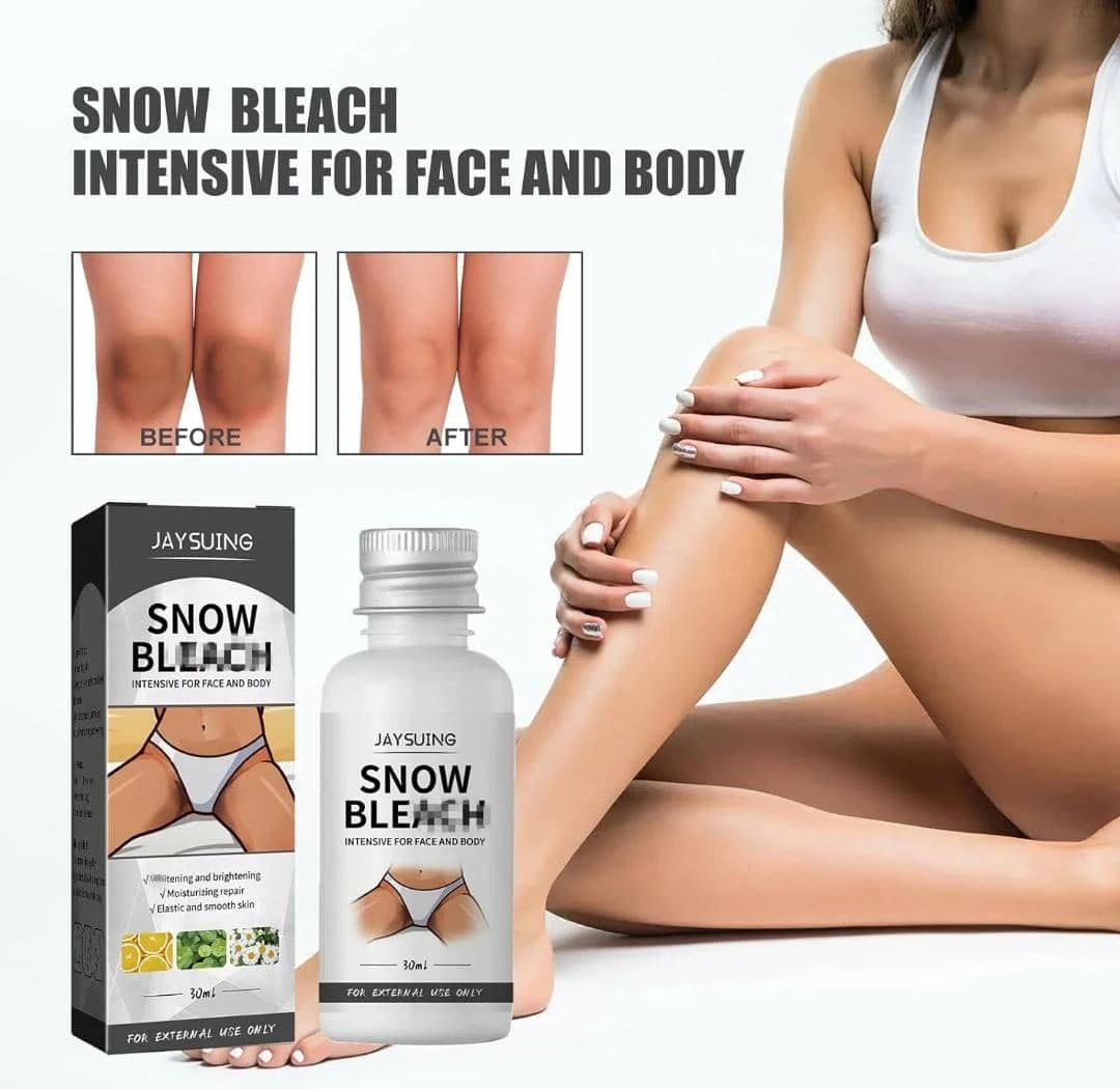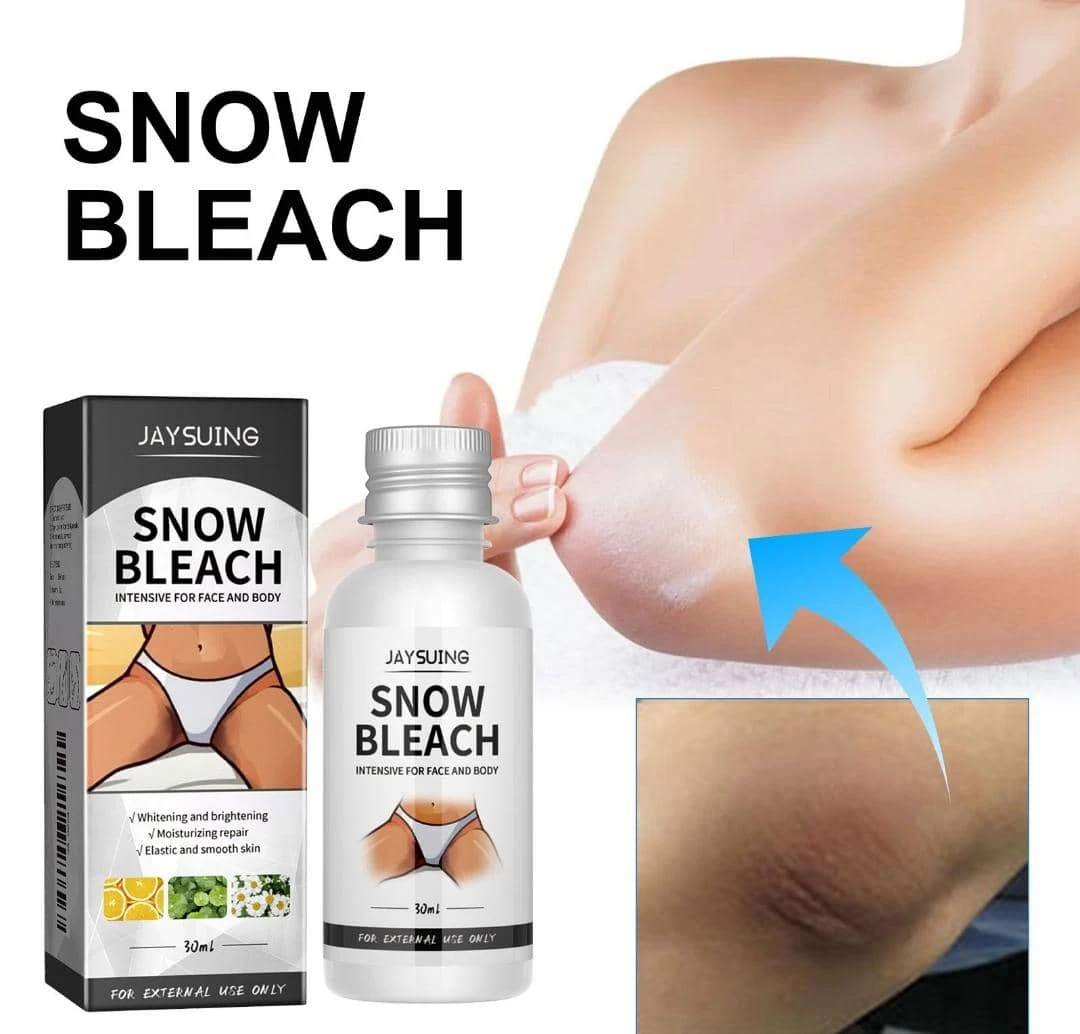 JAYSUING SNOW* *BLEACH" هو كريم مبيض للبشرة *مصمم للاستخدام الخارجي فقط* . يأتي المنتج في عبوة بحجم *30 مل* . الغرض الرئيسي منه هو تفتيح المناطق الداكنة على الجلد مثل الركب، الفخذين، والأصابع.