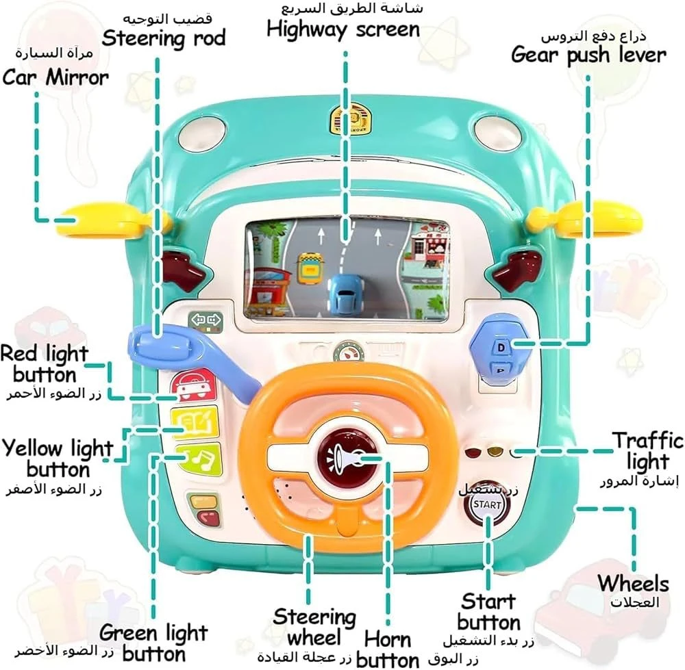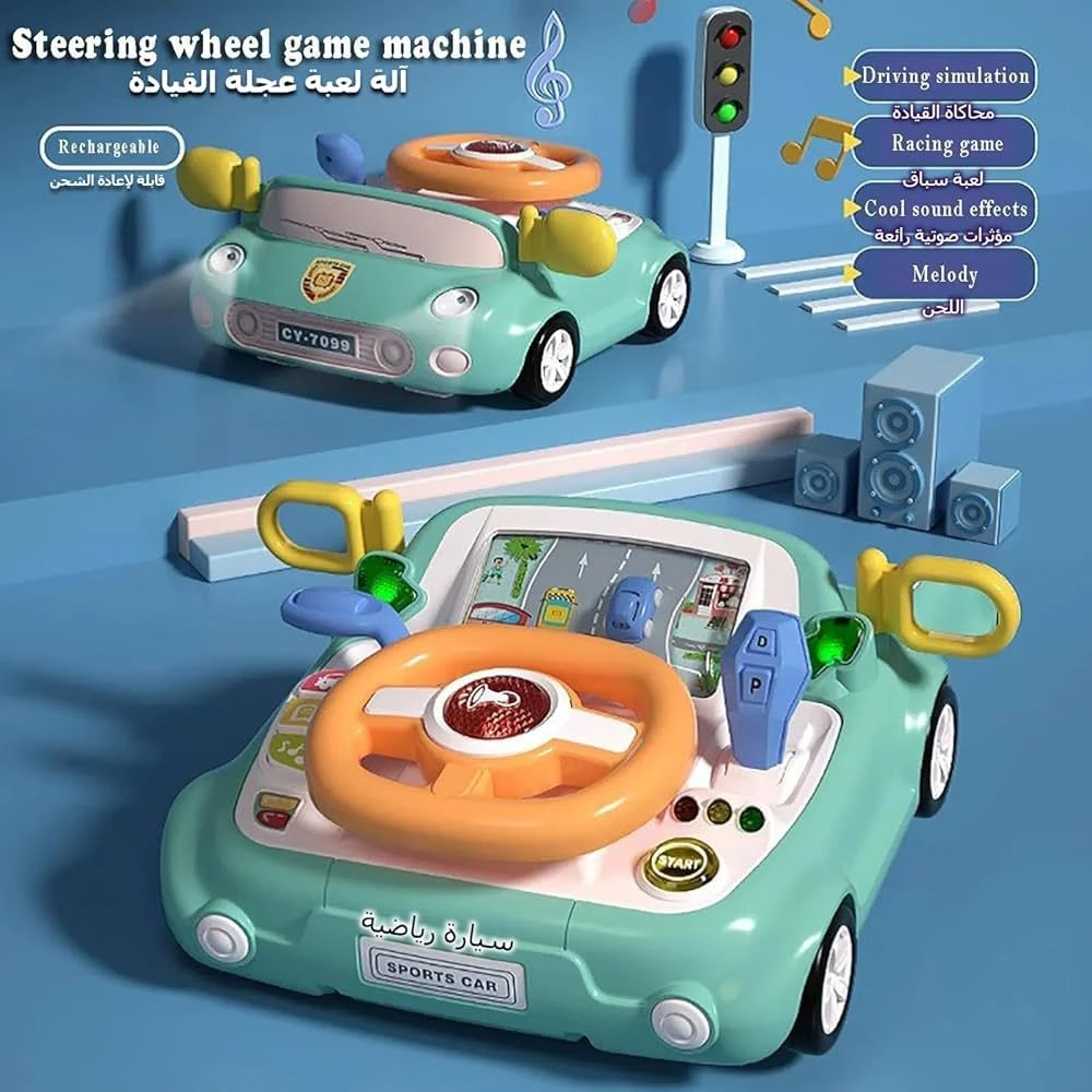 امنح طفلك مغامرة قيادة لا تُنسى مع هذه اللعبة المصممة بعناية لتشبه لوحة قيادة سيارة رياضية حقيقية! تتميز بعجلة قيادة قابلة للدوران، ناقل حركة بتصميم واقعي، مرايا جانبية، أزرار متعددة الوظائف، وشاشة تعرض مشهد قيادة ممتع. زر "START" يضيف لمسة من الحماس، بينما التصميم العام يشجع على اللعب التخيلي ويعزز المهارات الحركية والتنسيق البصري.