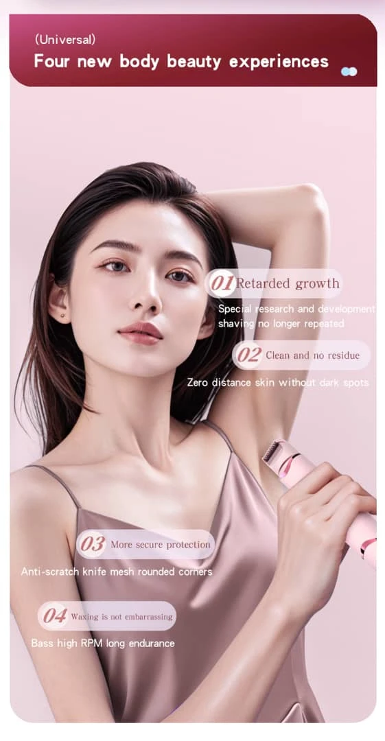 يمكن استخدامها لإزالة الشعر من الوجه والذراعين والساقين ومنطقة البيكيني.
