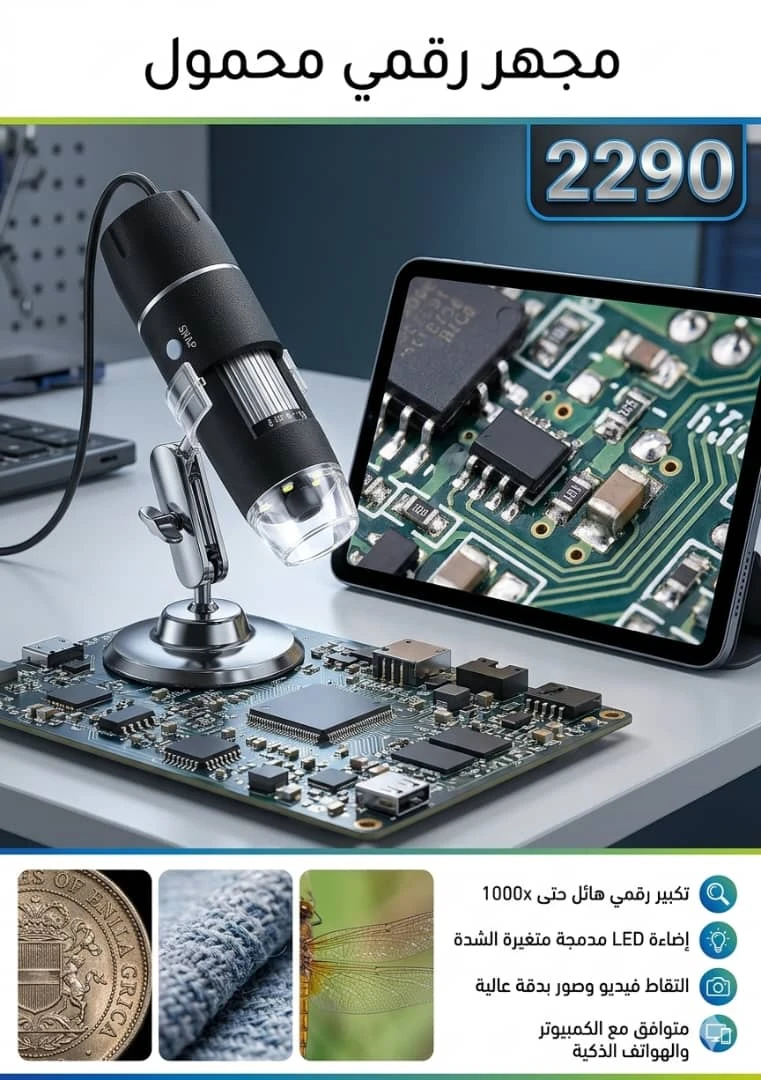 *هو مجهر رقمي محمول، ويتميز بالمواصفات التالية:*