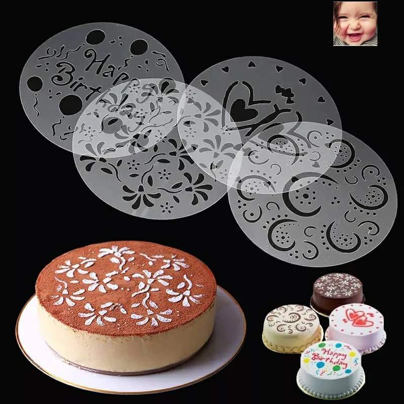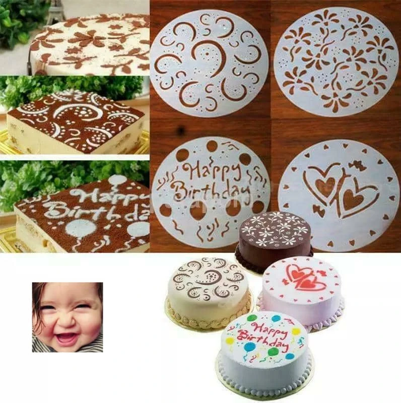 يمكنكي الرسم ب الكاكاو او ب جوز الهند او باي شي تريدينه كل ماعليكي فعله هو وضع القالب على الجاتو ورش الماده للطباعه 😎