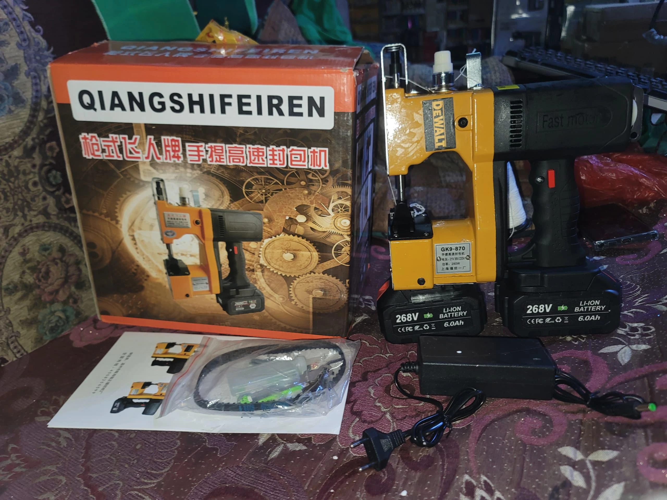 ماكينة خياطة الأكياس تعمل بالبطارية، مثالية لخياطة الشوائل والأكياس بسرعة وسهولة، تجمع بين القوة والمرونة لتناسب الاستخدام اليومي المكثف في المخازن، المصانع، والمزارع.