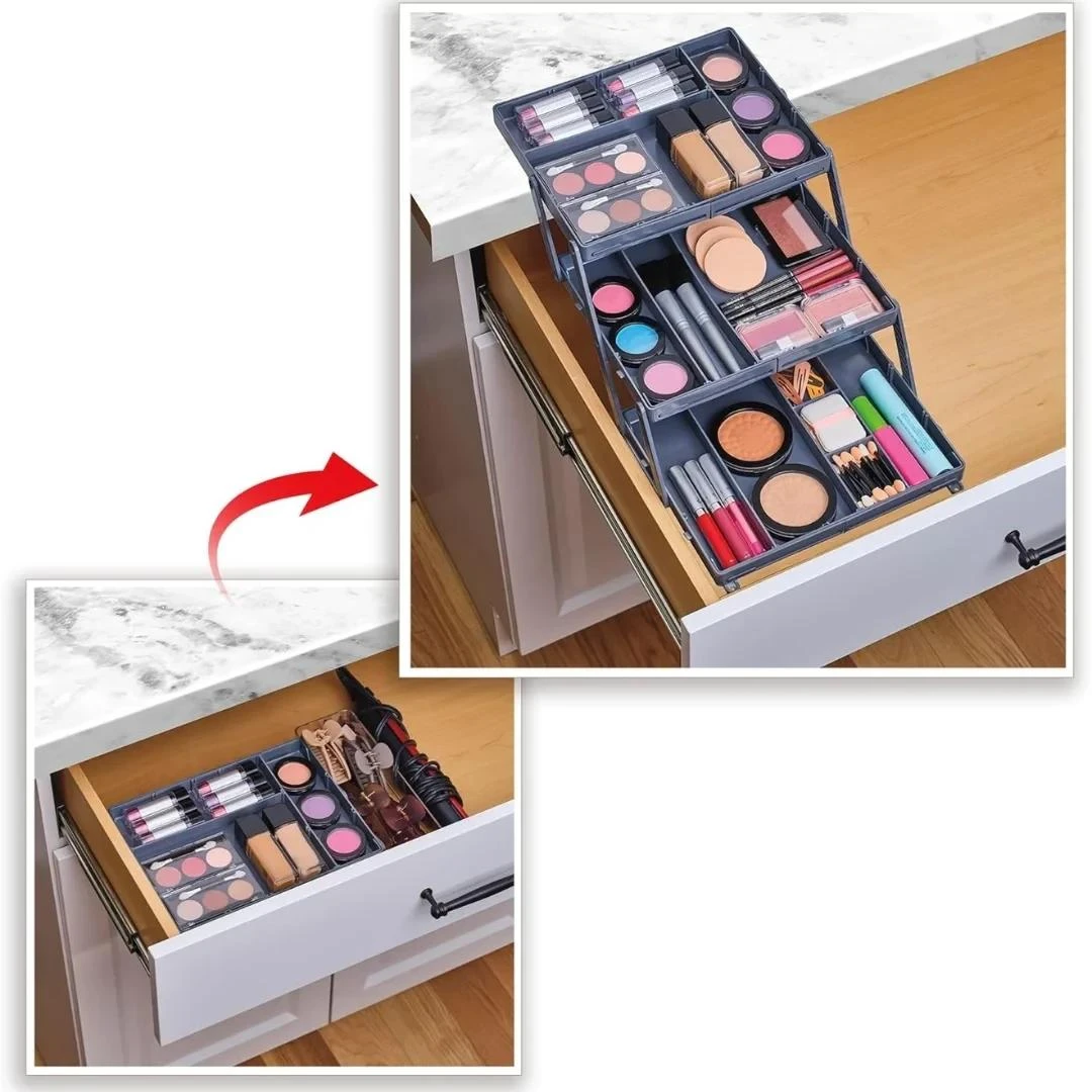 نقدم لك المنظم الثلاثي المتطور، قطعة هندسية مبهرة مصممة بذكاء لتمنحك أقصى استفادة من المساحة بأسلوب عصري جذاب. بفضل طبقاته المتعددة التي تفتح بانسيابية، ستجد كل ما تحتاجه أمام عينيك في ثانية واحدة!