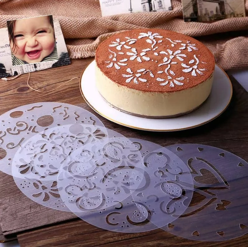 يمكنكي الرسم ب الكاكاو او ب جوز الهند او باي شي تريدينه كل ماعليكي فعله هو وضع القالب على الجاتو ورش الماده للطباعه 😎