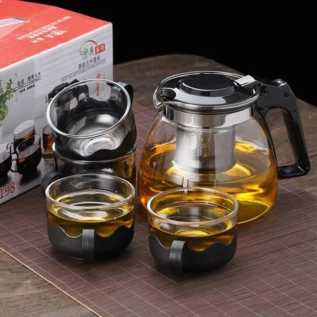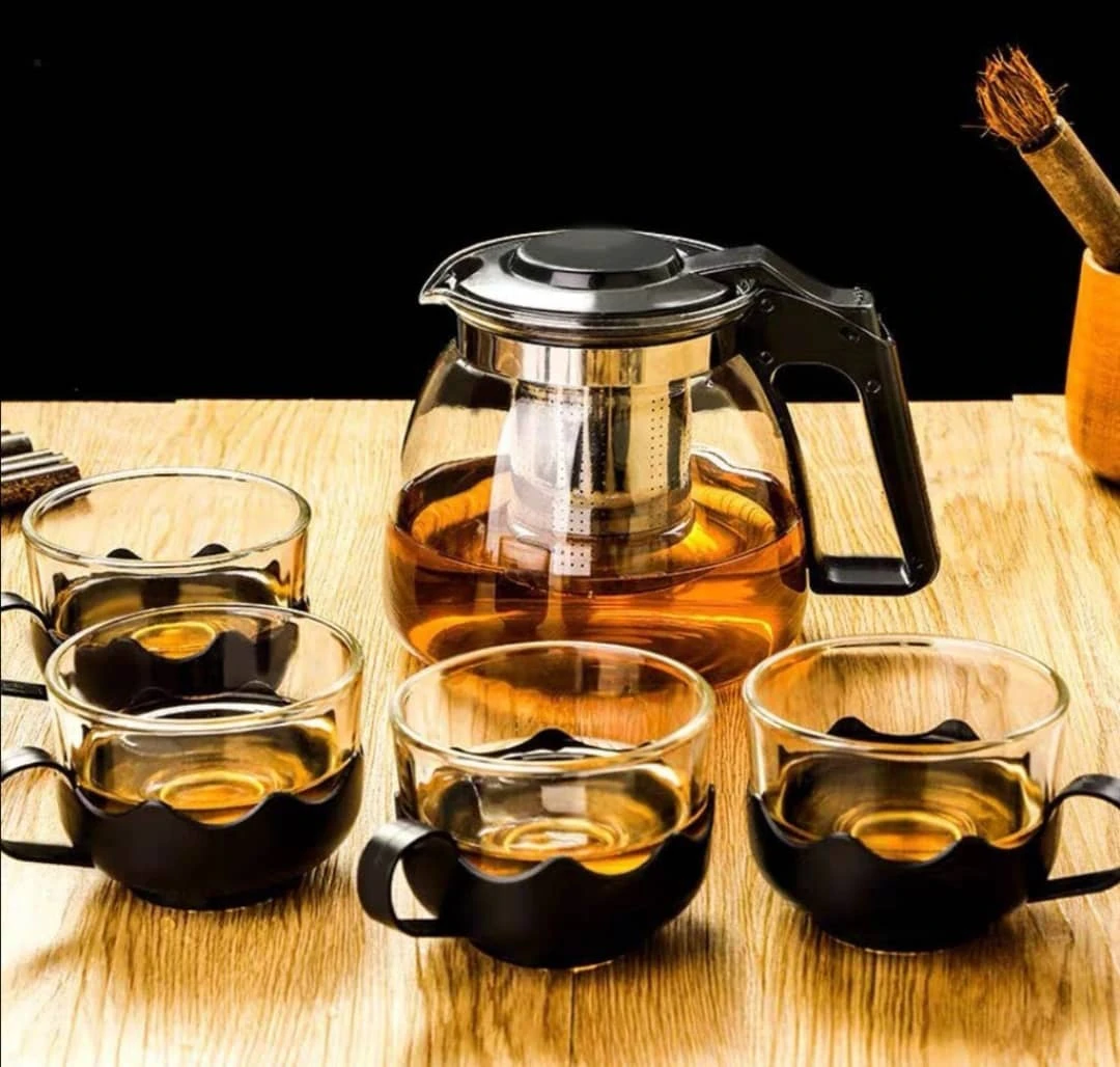 طقم كتلي زجاج مع 4اكواب زجاج ملبس😇